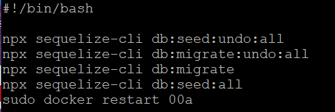 프로젝트의 물품목록을 리셋시키기 위해서는 Database를 아에 지우고 다시 만든 후 시드를 다시 채워야 했다. 또한 서버에 남아있는 데이터도 지우기 위해 서버도 재실행 시켜주어야 했다. 이렇게 실행해야할 작업이 여러개 있을 때는 셸 스크립트(.sh)로 작성하여 저장한다. 나는 reset.sh라는 이름으로 만들어주었다.
