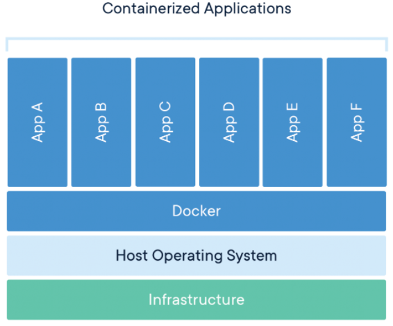 Docker로 여러 컨테이너를 실행시키면 위와 같은 형태이다. Host OS 위에 Docker 엔진이 있어 OS와 상관없이 여러 이미지를 실행시킬 수 있으며, 이들은 컨테이너로 격리되어있다. 따라서 서로 다른 프로그램 App A와 App B는 서로 영향을 주지 않는다.