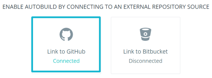 Build 페이지에는 GitHub 혹은 Bitbucket과 연결할 수 있는 선택지가 있다. 나는 GitHub를 이용할 것이기 때문에 GitHub를 클릭한 후 GitHub와 DockerHub를 연결해준다.