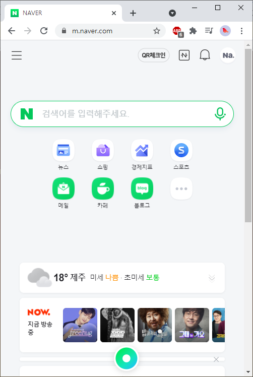 모바일 환경에서 네이버에 접속하면 주소가 m.naver이다. 네이버 홈화면은 적응형 웹이다. 적응형 웹이란 클라이언트의 기기 정보를 미리 받아 조건 별로 다른 리소스를 보여주는 것이다. 즉, 데스크탑, 모바일, 태블릿 기기마다 별도의 템플릿과 리소스를 작성하는 것이다. 다소 번거롭지만 구축 해놓으면 해당 기기에 맞는 콘텐츠만 다운로드 받으므로 반응형 웹에 비해 로드 속도가 빠르다.