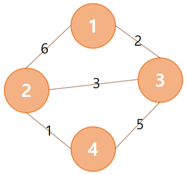 let edges = [ [1, 2, 6], [1, 3, 2], [2, 3, 3], [2, 4, 1], [3, 4, 5], ];