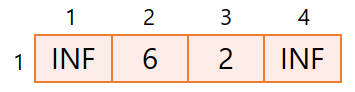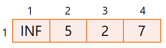 1) 1번 노드와 모든 노드와의 거리를 기록한다. 연결되지 않거나 자기 자신은 INF(Infinity)로 표시한다.