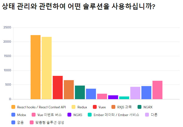 2020년도 전 세계의 프론트엔드 개발자 4500명을 대상으로한 설문에 의하면 3년 안에 사라질 것 같은 솔루션 1위로 Redux가 뽑혔다. 조사에 의하면 이미 상태 관리를 위해 React Context API 및 Hooks를 사용하는 비율이 Redux를 추월하였다. 앞으로 React의 상태관리는 Context API로 대체되는 것일까? 이러한 상황에서 2020년 5월 FaceBook에서 Recoil이라는 상태관리 솔루션을 발표하였다. Recoil을 한 번 사용해보자.