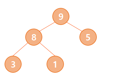 같은 데이터를 저장한 힙(위 그림)에서 6을 입력해보자. 일단 6은 가장 하위 레벨(5의 자식)으로 입력된다. 그 후 부모인 5와 비교하여 6이 더 크므로 부모와 자리를 교환한다. 이 후 다시 9와 비교하여 9보다 작으므로 자리가 고정된다. 이 때 이전과 다른 점은 [1, 3, 8]과는 비교하지 않는다는 점이다. 힙은 직접 연결된 부모-자식간의 값만 비교하므로 부모의 형제를 루트로 하는 부분트리의 노드와는 비교하지 않는다. 시간복잡도로 따지면 O(log2N)이다.