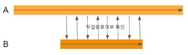 동기 논블로킹은 작업들의 시작 시간, 종료시간이 서로 영향을 받으면서 + 다른 작업이 끝나기를 기다리지 않는 경우이다. A작업이 자신의 작업을 수행하면서 B작업이 완료여부를 지속적으로 확인하는 경우가 이에 속한다. Java의 Future.isDone()이 이에 속한다고 한다.