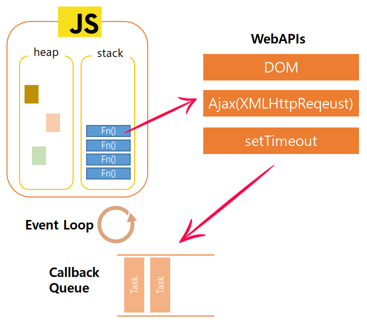JavaScript로 비동기 작업을 JS 런타임에서 처리 후 연결된 콜백 함수를 JS 엔진의 콜스택으로 적절한 타이밍에 적재시키기 위한 장치가 Event Loop이다. 이벤트 루프에 의해 JS 엔진의 콜스택에 적재되기 전 콜백함수가 대기하고 있는 곳을 Callback Queue 혹은 Task Queue라고 한다. 태스크 큐는 2가지 종류의 우선순위 큐로 구성되어있으며, 두 개의 큐 간에도 우선순위가 존재한다.