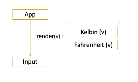 App은 Input에게 render prop 함수를 내려준다. 해당 내용은 value를 받으면 이를 이용하여 켈빈, 화씨 컴포넌트를 렌더링하는 것이다. 이때 render 함수의 value라는 파라미터는 Input이 render 함수를 호출하며 전달된 사용자 입력 값이 된다.