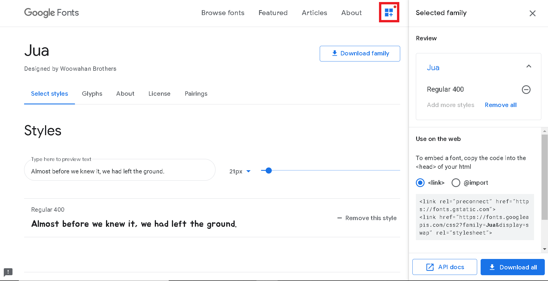 1. 구글 폰트 사이트에서 원하는 폰트를 찾는다.