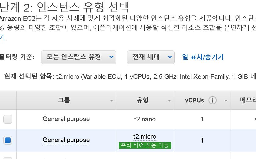 2. 인스턴스 유형 선택