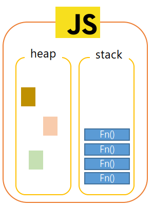 V8와 같은 자바스크립트 엔진은 위와 같이 힙영역과 스택영역으로 구성되어 있다. 이 부분은 분명히 싱글스레드이다. 따라서 함수호출(처리할 일)이 생길 때마다 하나의 스택에 일렬로 쌓이이며 나중에 쌓인 함수부터 차례대로 처리된다.