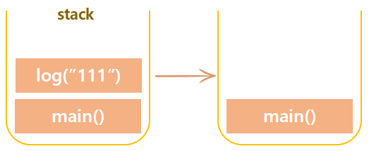 3번 코드가 실행되기 직전의 stack은 main()만 존재한다. 이 위에 3번 코드가 쌓이고 실행이 완료되면 3번 코드가 스택에서 사라진다. 이 때 3번 코드가 끝났다는 것은 main()의 모든 코드가 실행이 완료되었다는 의미이므로 main()도 스택에서 제거된다. 즉, 스택이 비어있게된 것이다.