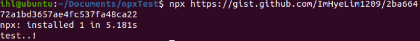 git에는 간단한 코드(Code Snippet), 로그, 메모를 공유할 수 있는 gist라는 기능이 존재한다. gist의 위치를 npx로 접근하여 위와 같이 gist의 코드를 실행해볼 수 있다.